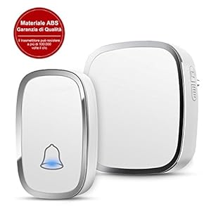 OTTIMA QUALITÀ & IMPERMEABILE IP44: Questo campanello è fatto di materiale ABS, non tossico e innocuo. Il trasmettitore è IP44 impermeabile e accettabili per uso esterno. Si mantiene contro polvere, pioggia e alta temperatura. Nessuna radiazione elettromagnetica. CE certificato.SKU: n/a -