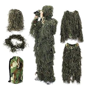 OUTERDO 3D Foglia Vestito di Ghillie Woodland Camo Abbigliamento Mimetico Giungla Caccia Formato Libero