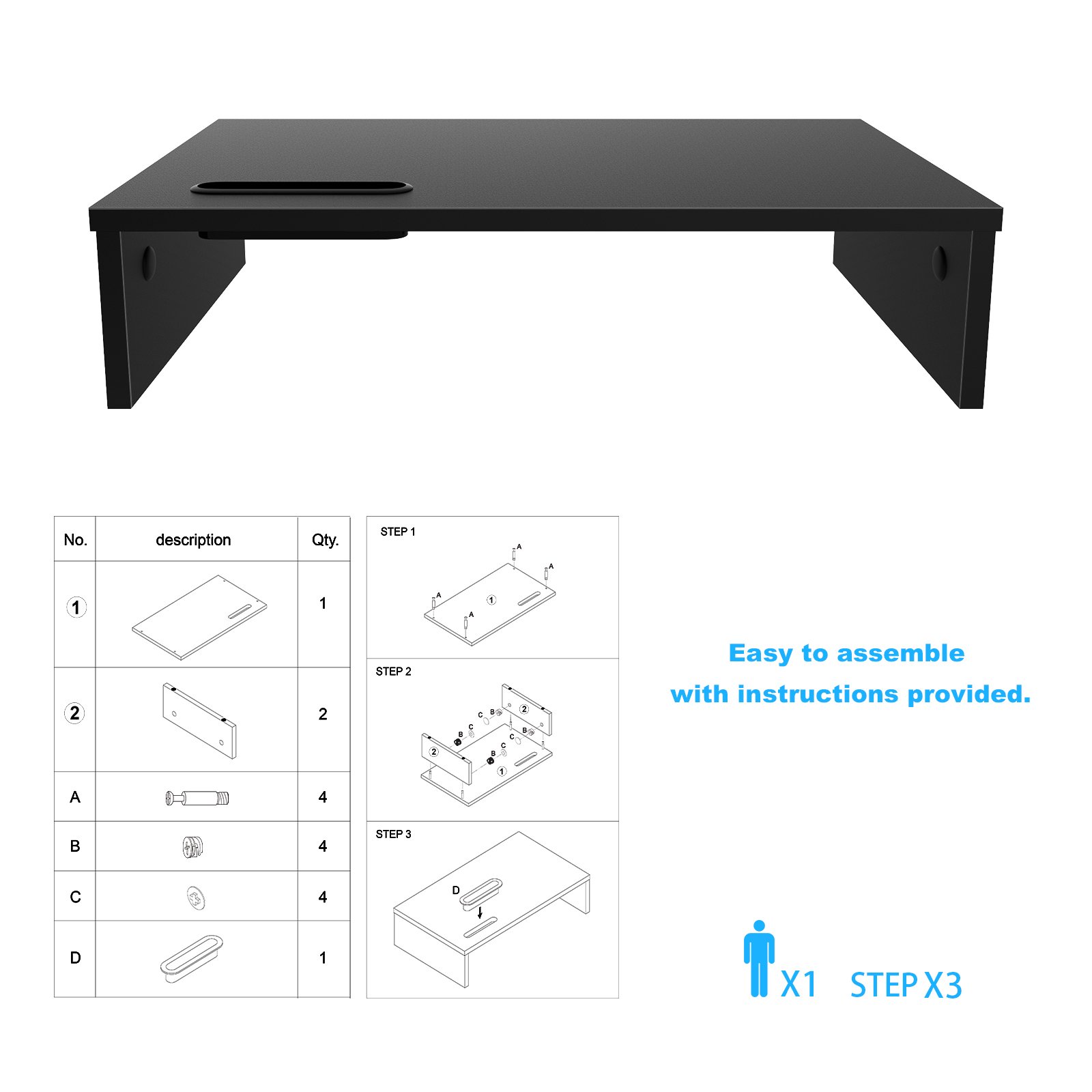 Multifunzionale, in grado di supportare monitore del PC/Schermi, computer portatili, stampanti, fax, schermo del computer, supporto di TV monitore, supporto della tastiera ecc. (Massimo Peso nominale è 30KG) Ripiano superiore supporte 10KG, ripiano di fondo supporte 5KG.