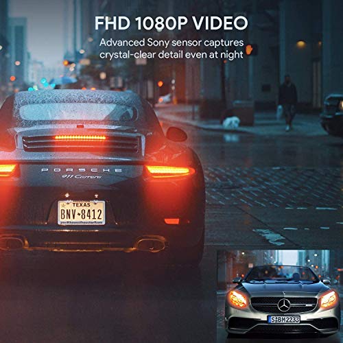 【Sensore Sony migliorato】: Il DR02 D è un completo sistema di telecamere frontale e posteriore che ti supporta in qualsiasi incidente stradale. I sensori Sony IMX307 in entrambe le telecamere catturano video super nitidi da 1920x1080p a 30fps e funzionano alla perfezione durante la guida notturna grazie alla funzione HDR