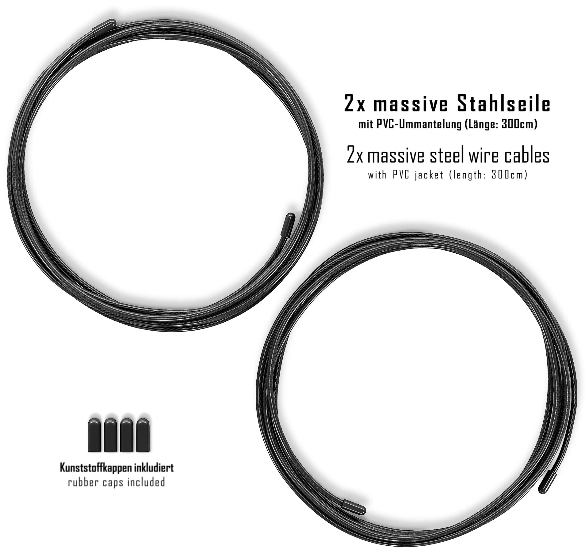 ? SUITABLE FOR ALL – CONVINCE YOURSELF ? Man, woman, professional athlete or beginner – our massive 10ft non-kinking wire cable can be easily adjusted to any height while the ergonomic anti-slip handles ensure the perfect grip even for intense exercise sessions.