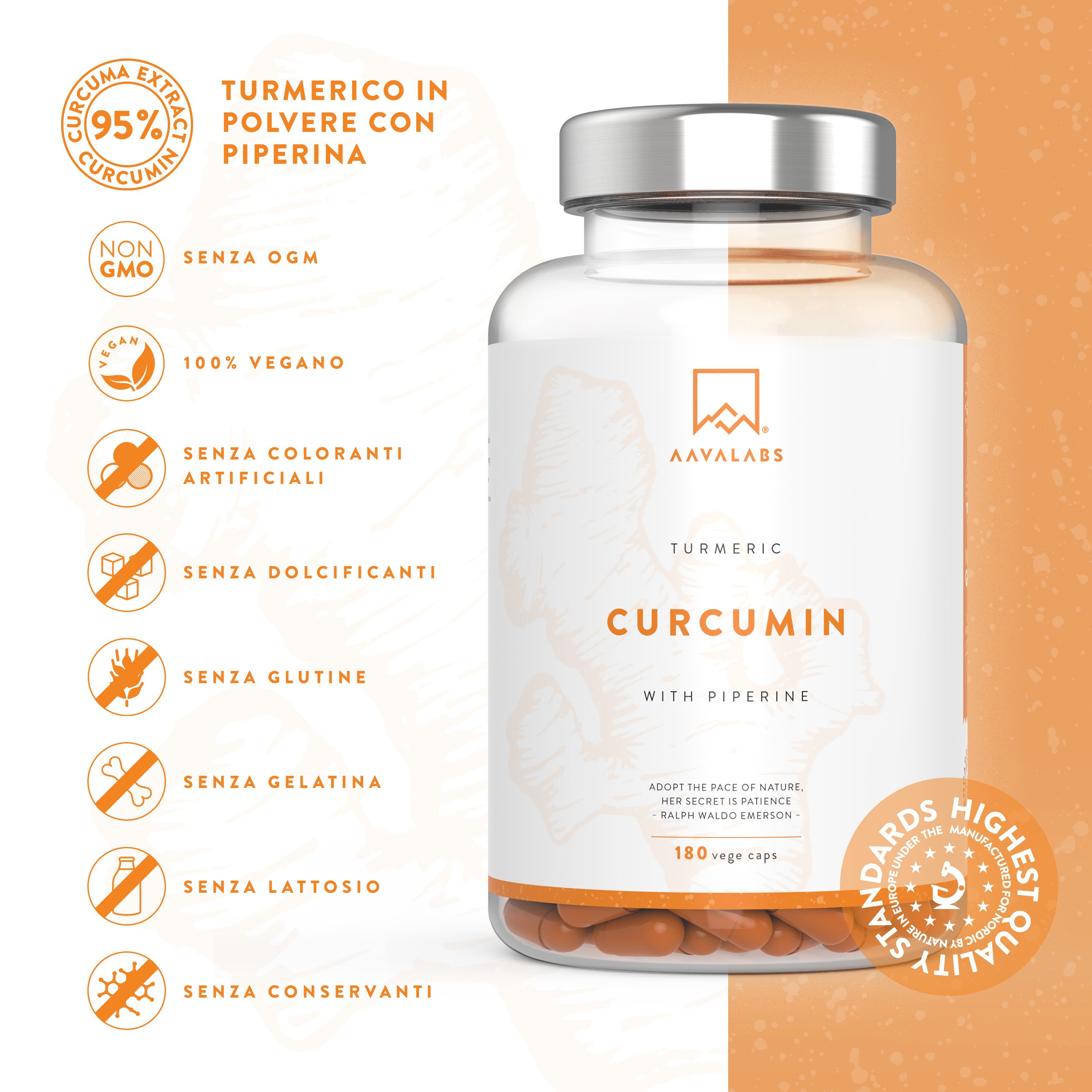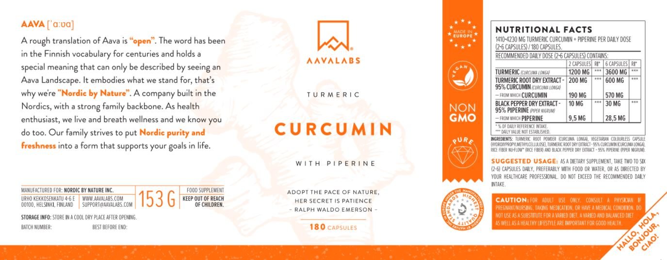 Perché acquistare da AAVALABS? Perché siamo un’azienda a conduzione familiare con sede in Finlandia. Abbiamo particolarmente a cuore la necessità di offrirvi un integratore sicuro, puro ed efficace. La nostra formula di Turmerico è prodotta secondo standard qualitativi rigorosi ed è certificata da terze parti.