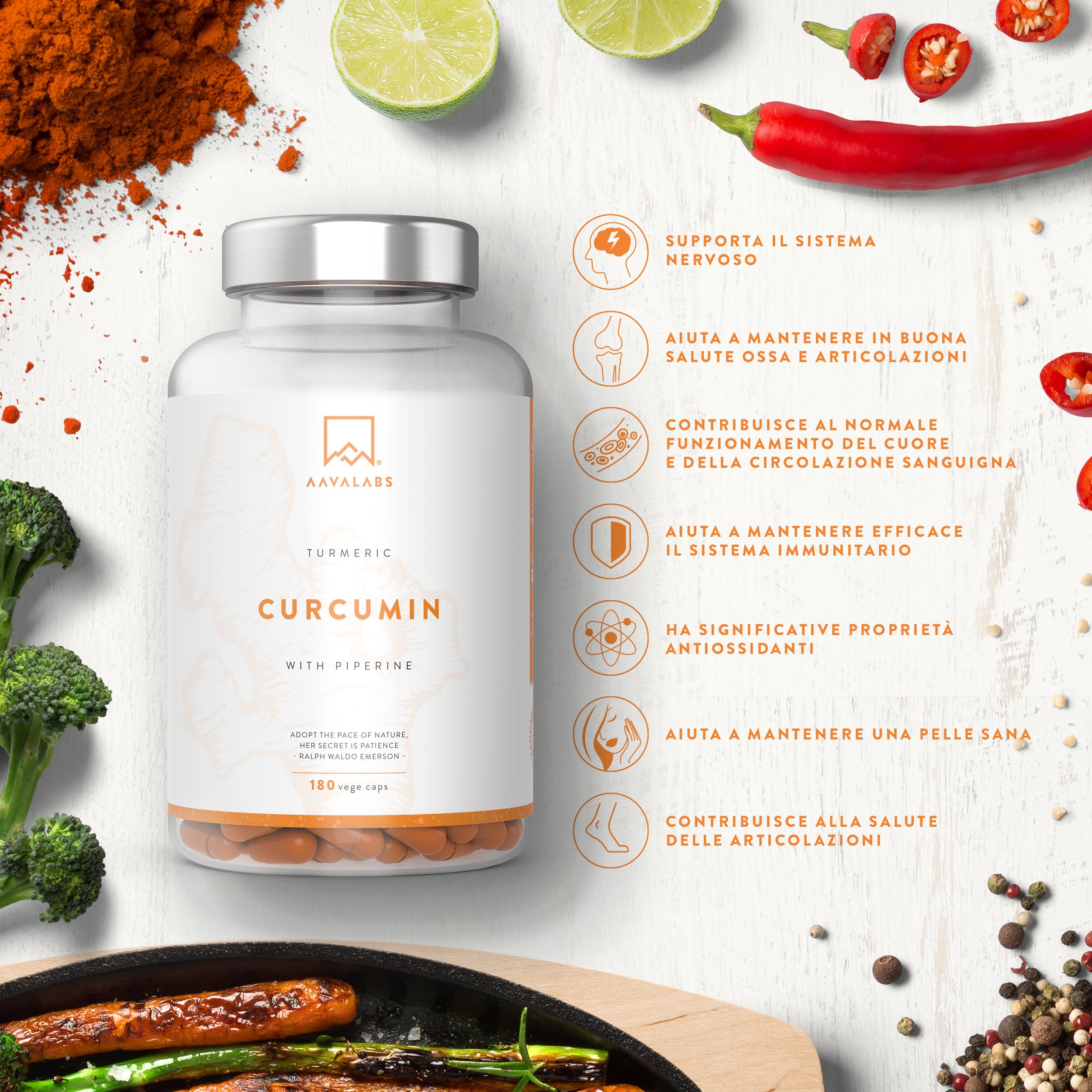 - – 1400-4230mg Curcumina di Turmerico e Piperina per porzione, 2-6 Capsule (Flacone da 180 capsule)