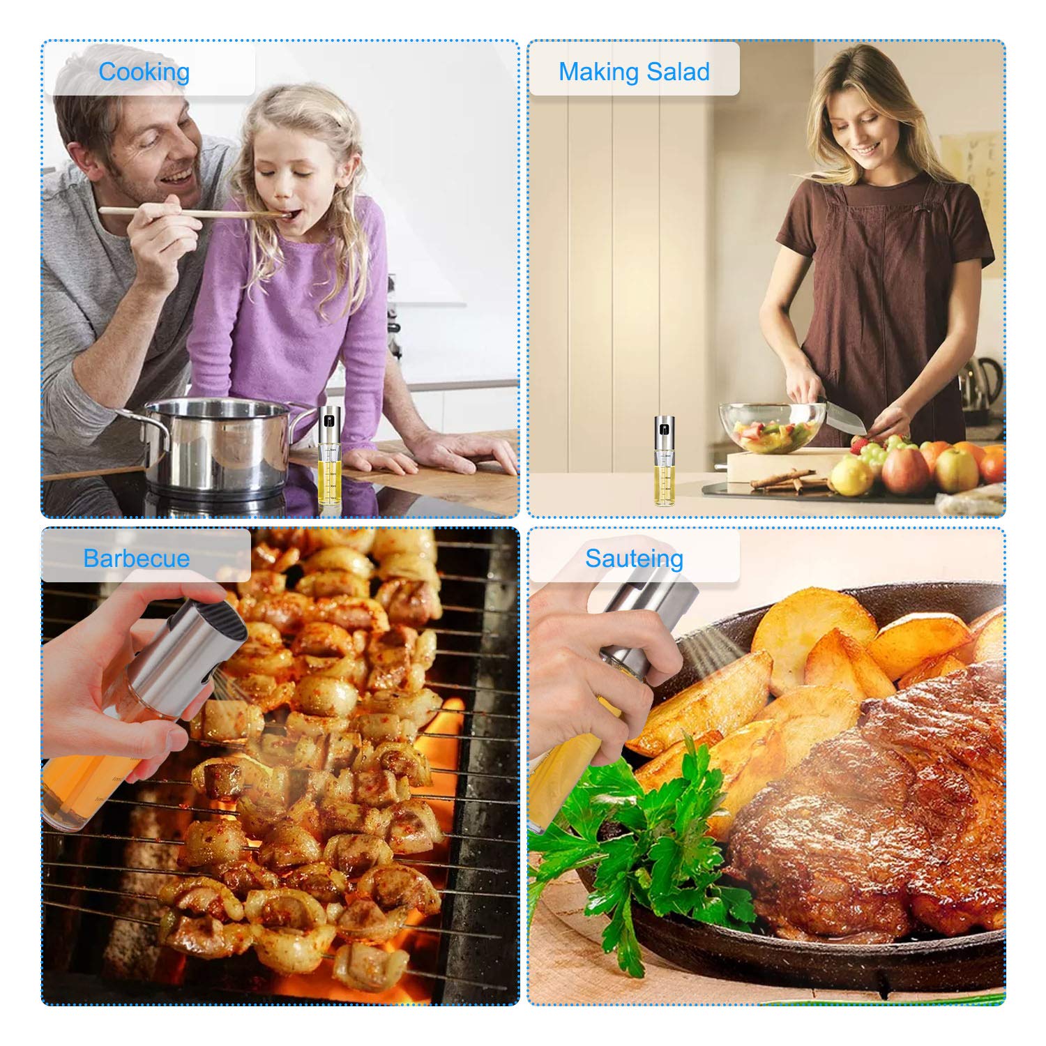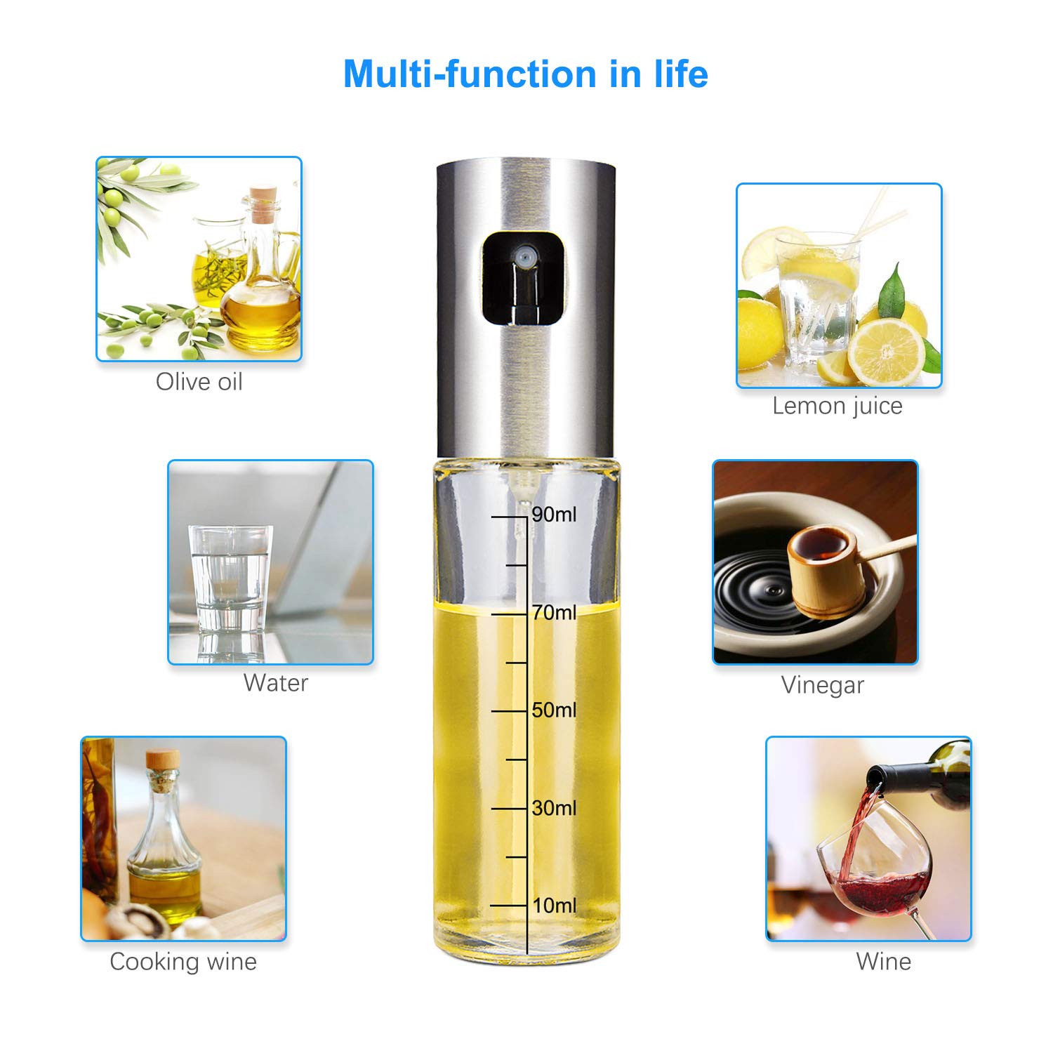 MULTIUSO: riempilo spruzzatore di olio con i tuoi oli preferiti, aceto, succo di limone, sherry o vino. Perfetto per spritzare condimenti per insalate, grigliate salutari, arrostire, grigliare, cuocere o spruzzare nebbie d’acqua.
