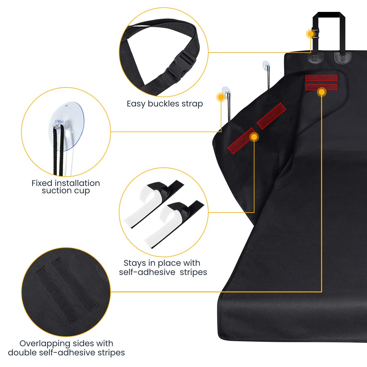 ★ Facile da installare – Installa in pochi secondi avvolgendo le cinghie regolabili intorno ai poggiatesta del sedile posteriore. Ci sono anche 4 ventose e 4 cinturini in velcro rimovibili per fissare saldamente il coperchio. Con gli ancoraggi del sedile e le nostre cinghie rinforzate per il poggiatesta a sgancio rapido.