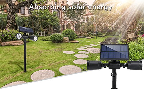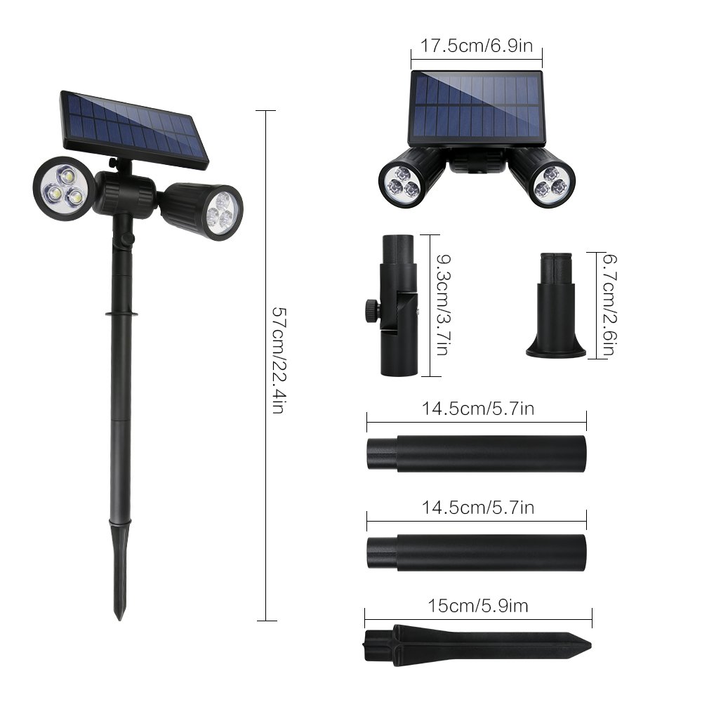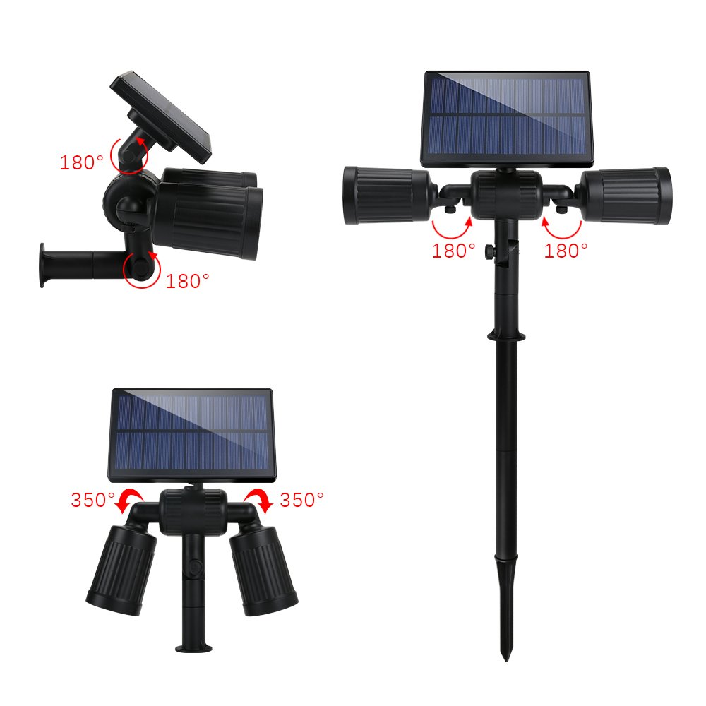 1. 【Liberamente orientabile】: Il pannello solare del prodotto può essere ruotato di 180°, in modo da poter ricevere la maggior quantità di luce solare diretta nelle diverse stagioni dell’anno in modo e poter così ricevere la maggior energia possibile in ricarica. Invece, per quanto riguarda le lampade, esse possono essere ruotate in verticale di 350° ed in orizzontale di 180°, così da poter illuminare secondo ogni angolazione desiderata.