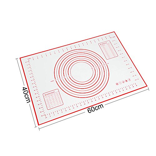 Dimensioni: 60×40 cm. Non c’è bisogno di preoccuparsi di arrotolare la pasta, fondente o torta crosta dal tappetino e sul bancone.