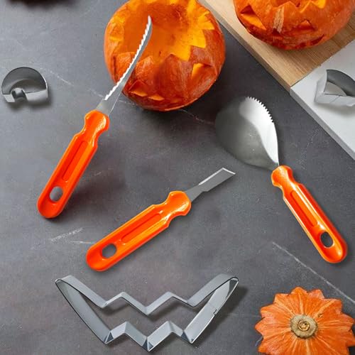 💀 Set per intagliare zucche di alta qualità: Lo strumento per intagliare la zucca di Halloween è realizzato in acciaio inossidabile alimentare, resistente e facile da pulire e non arrugginito, in modo da poter trascorrere molte stagioni di Halloween con esso.