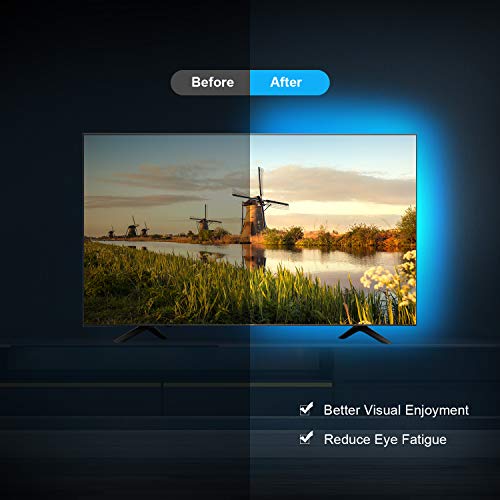 ✨【Protegge Gli Occhi】La striscia luminosa a LED crea la luce brillante e uniforme che si dà una sensazione molto rilassante per ridurre l’affaticamento degli occhi e crea una splendida illuminazione di polarizzazione mentre si guarda la TV o giochi.