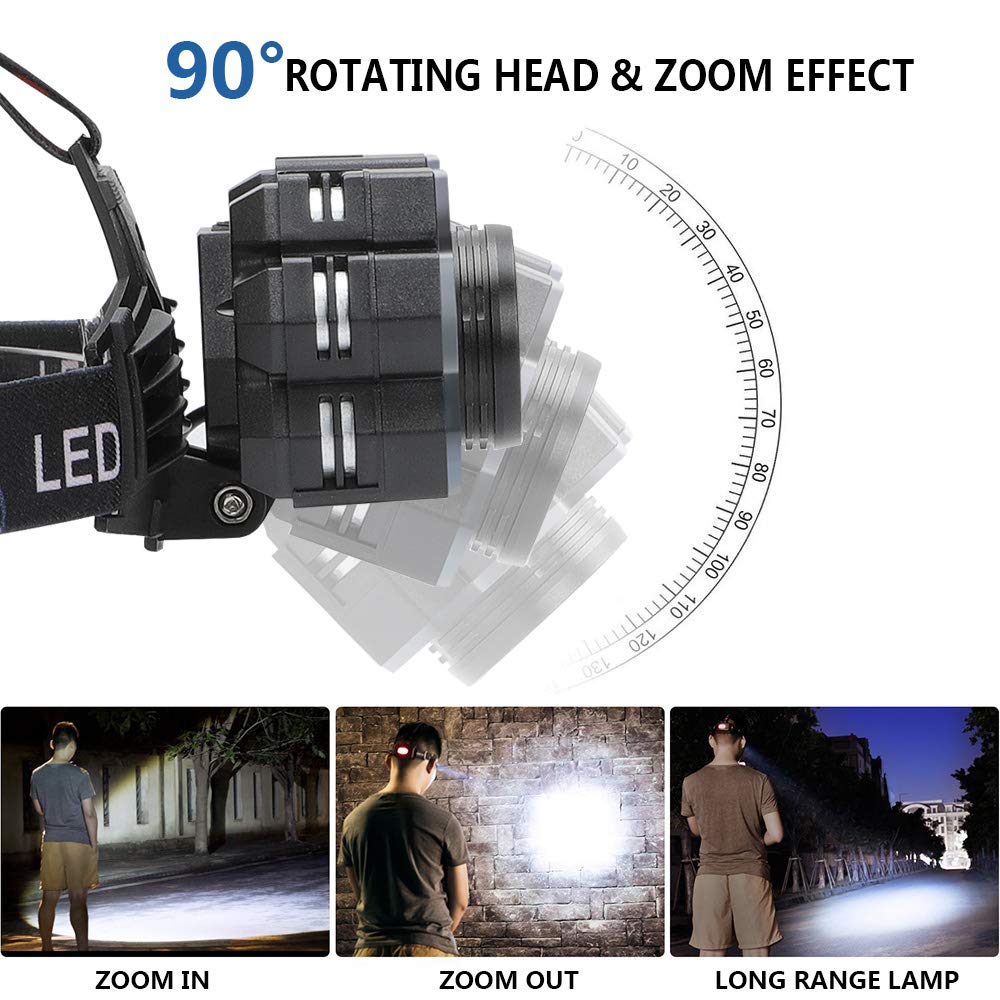 Compra Lampada Frontale LED 5000LM, Torcia Lampada testa led ricaricabile USB Professionali con 4 Modalità di Illuminazione, 3 Metodi di ricarica, 90℃ Ruotabile, 2pz Ricaricabile Batteria 18650. SPEDIZIONE GRATUITA su ordini idonei