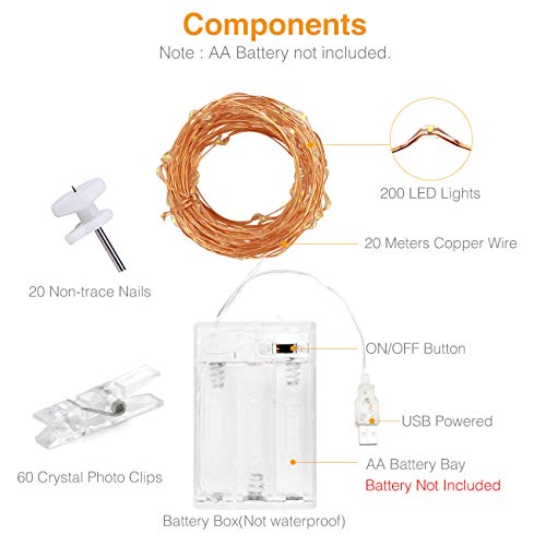 ✨【3 * batterie AA alimentate】 Le luci delle fate sono alimentate da 3 batterie AA (non incluse) e non è necessaria la presa CA. Ottimo per uso interno, sicuro anche per uso esterno in un’area coperta.