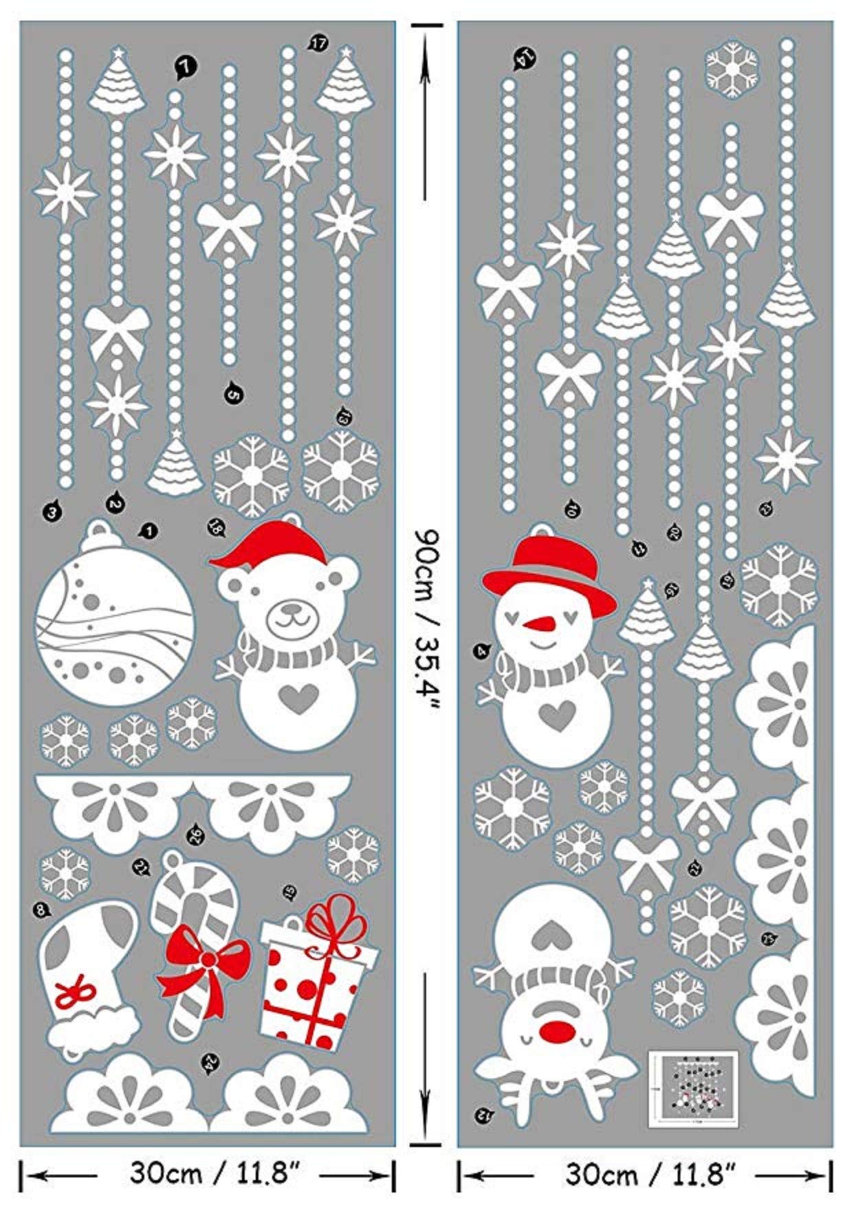MINGKIDS Vetrofanie Natale, Adesivo Natalizio, Adesivi per Albero di Natale Adesivi statici Adesivi murali per finestre casa Negozio (Adesivi per Alberi di...