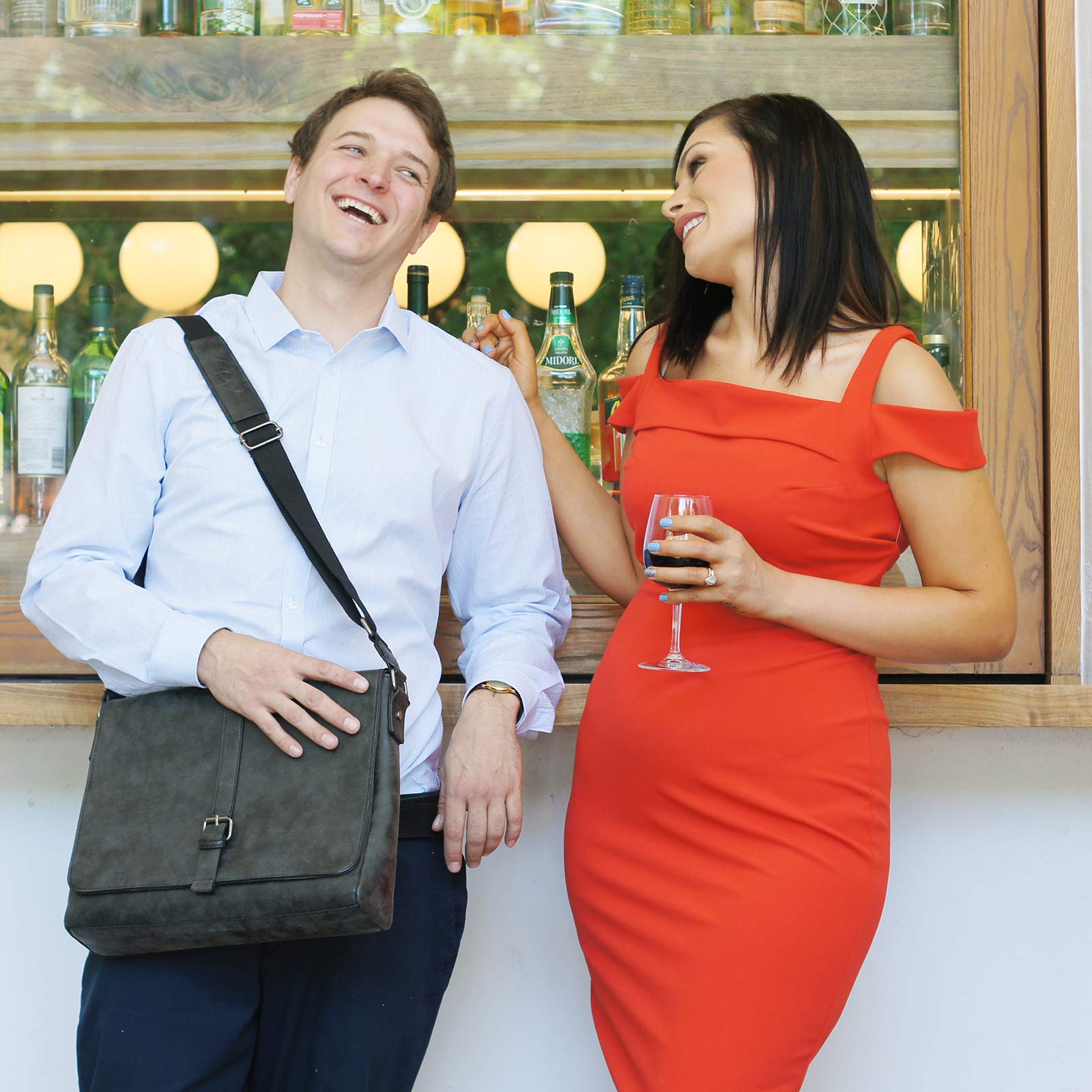 Il lembo esterno di Portovino nasconde il beccuccio versatore fino a quando non sei pronto per festeggiare. La borsa messenger PortoVino è perfetta per chiunque voglia portare la festa.