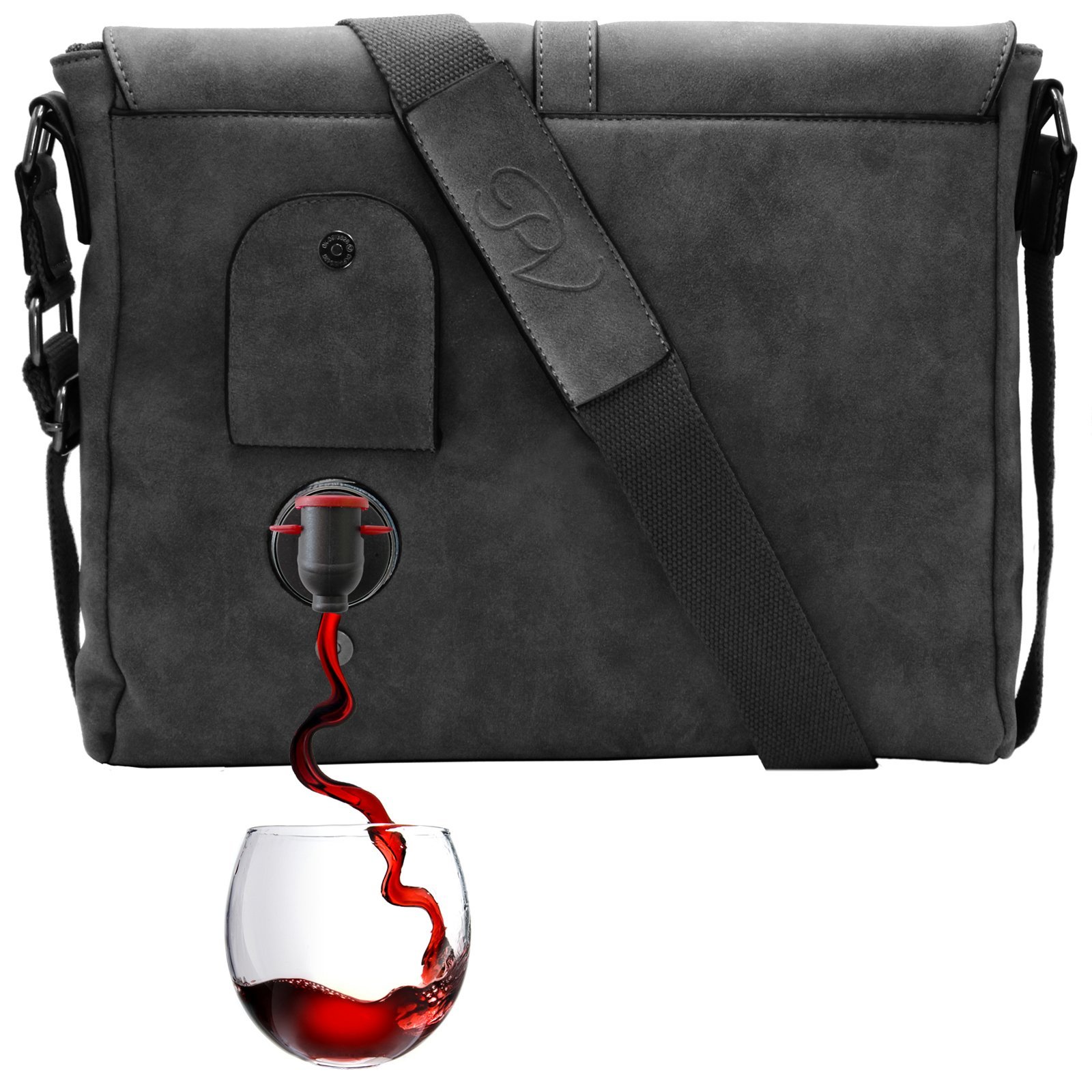 Porta il tuo vino o la tua bevanda preferita insieme alla borsa Messenger PortoVinoTM che custodisce segretamente un serbatoio rimovibile e sostituibile con beccuccio versatore. Un accessorio elegante che può essere utilizzato con o senza il serbatoio. La borsa a tracolla PortoVinoTM ti permette di portare la festa! Questo versatile è progettato per trasportare tutti i tuoi elementi essenziali, compresa la bevanda essenziale in movimento. L’esclusiva tasca laterale con cerniera nascosta in attesa di brevetto contiene una busta per feste che trattiene e versa la tua bevanda preferita. Ogni borsa è dotata di un sacchetto per le feste che funge da serbatoio con un beccuccio per contenere e versare fino a 2 bottiglie di vino o 1,5 l della vostra bevanda preferita. Il retro della borsa portamonete PortoVino ha una linguetta a bottoni stilistica che, una volta aperta, consente l’accesso al beccuccio erogatore per poterlo versare facilmente anche in viaggio. Questa resistente borsa in pelle sintetica ha una robusta tracolla per un trasporto facile e comodo. C’è un ampio compartimento principale per contenere un portafoglio e tutte le necessità – anche un laptop. Un ottimo modo per mantenere tutti idratati – fidanzate, mariti e bambini! (vino / acqua / gatorade / succo di frutta ovviamente!).
