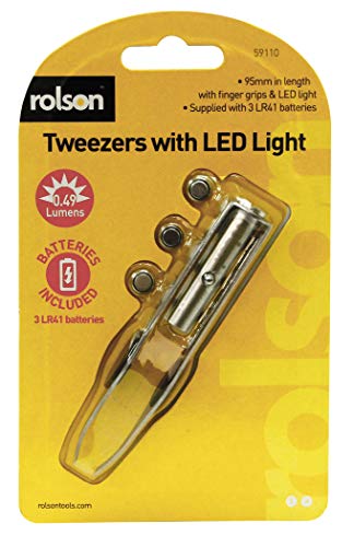 95mm tweezers with finger grips and LED light, Ideal for hobbyist, modelling as well as beauty applications, etc, Supplied with 3 x LR41 batteries (Order Code: FM30 for replacements)