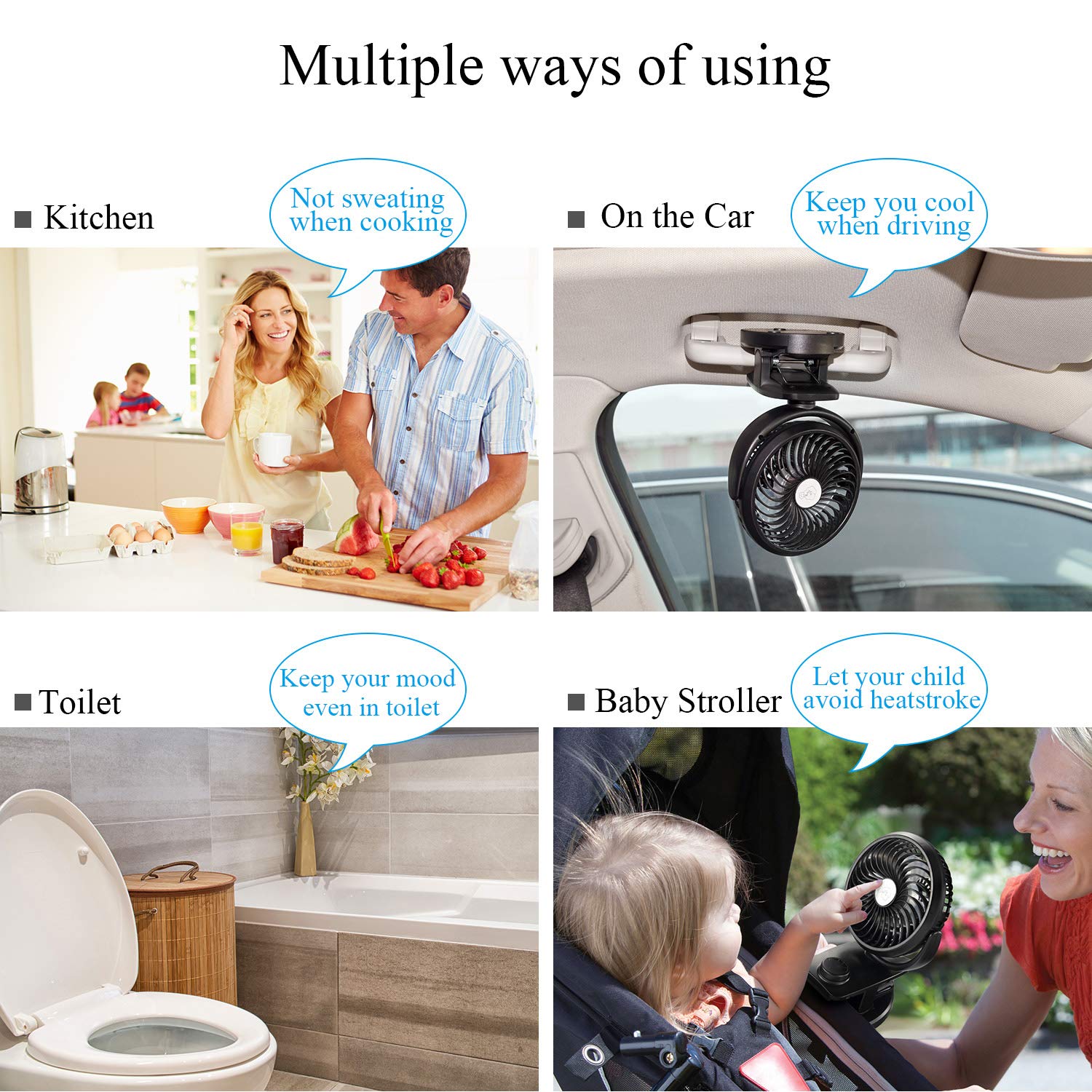 ✤ 【WIND VELOCITÀ REGOLABILE】 L’con impostazioni di velocità della batteria clip del ventilatore regolabili per soddisfare le vostre esigenze, la velocità del vento è superiore alla maggior parte mini-fan sul mercato, la ventola massima velocità raggiunta 4500 rpm. Aumentare o diminuire la velocità della ventola ruotando l’interruttore on / off (Nota: l’alta velocità fa rumore).
