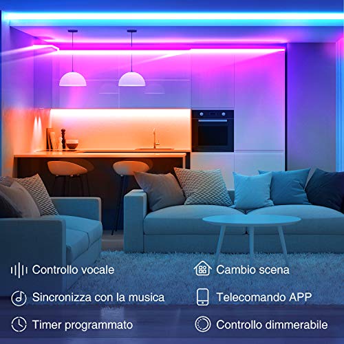 UK-Smart LED Strips Lights RGB 5M(16.4FT), Lumary SMD 5050 Dimmer Multicolour Changing Lighting Kit, Alexa/Google Assitant/APP Control Mood Light for Home Kitchen Christmas Wedding Party DIY Decoration [Energy Class A++] ... IT-Striscia LED Alexa, Lumary Smart LED Strisce Wi-Fi RGB+Bianca Regolabile(2700K-6000K) Sincronizza con Musica ...