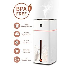 ▼▼GRANDE CAPACITÀ 1000ml – Disegnato con un serbatoio di 1000ML per produrre meglio e più nebbia, 1000ml umidificatore rilascerà nebbia ad una velocità di 50ml ogni ora su un’area di 30-40 metri quadri, perfetto per camera da letto, soggiorno, yoga, spa, albergo, ecc.